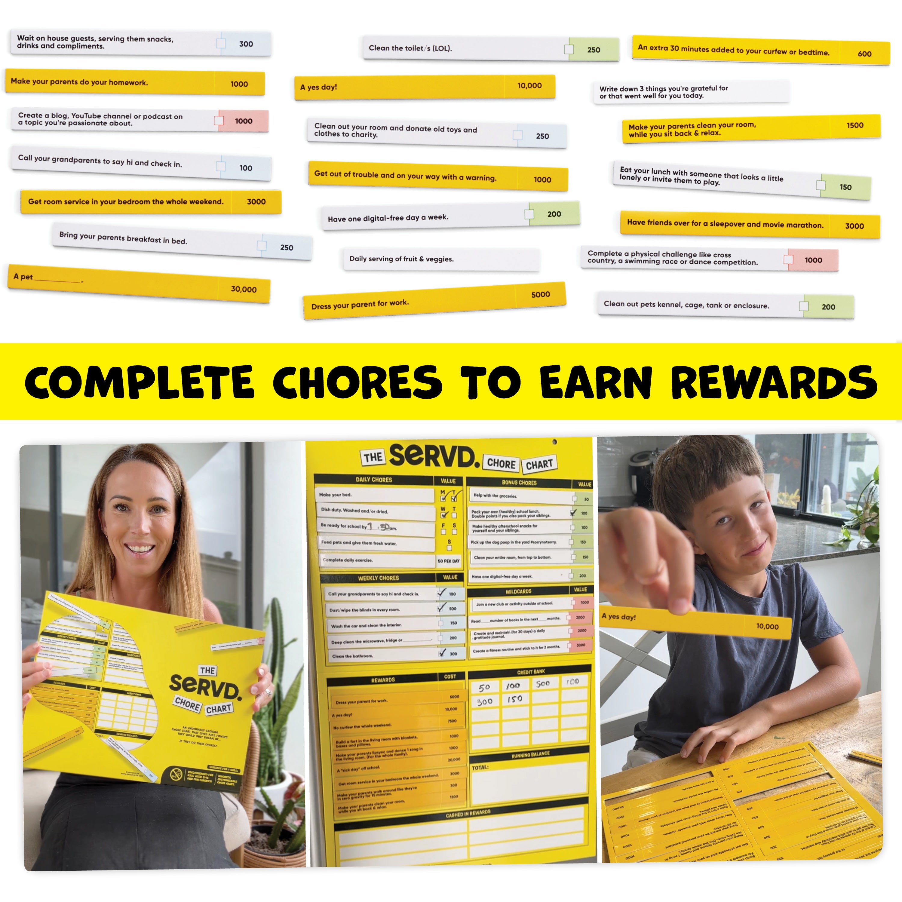 Equipped with a ton of undeniably exciting incentives, the SERVD Chore Chart will give kids powers they could only dream of.. If they do their chores!